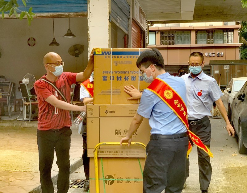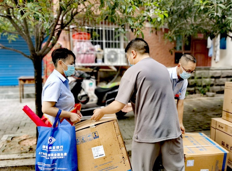 高温天气持续肆虐之时,四川南充新冠肺炎疫情突如其来,在防疫物资紧张、一线防疫工作人员不足的关键时刻,绵阳市商业银行南充分行主动担当、积极行动,深入践行国有企业的社会责任。第一时间组建志愿服务队,在受交通管制,无车辆通行证的情况下,积极联系租用三轮车,服务队员脚踏三轮车助“战疫”,陆续将2800把扇子、1800包纸巾、1000瓶矿泉水送至顺庆区东南街道各个核酸采集点,为高温下奋战一线的工作人员们、排队等待核酸采样的居民们送去必备物资。