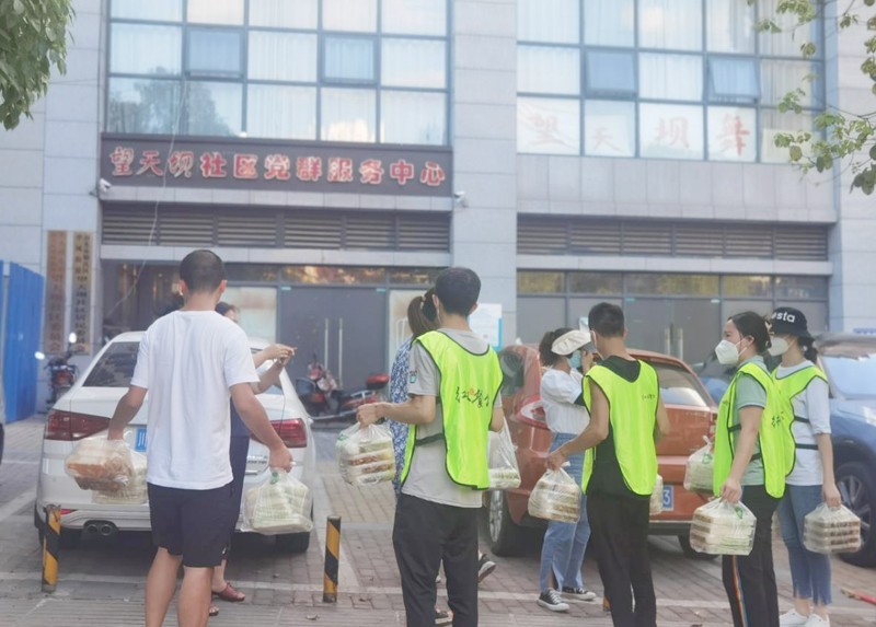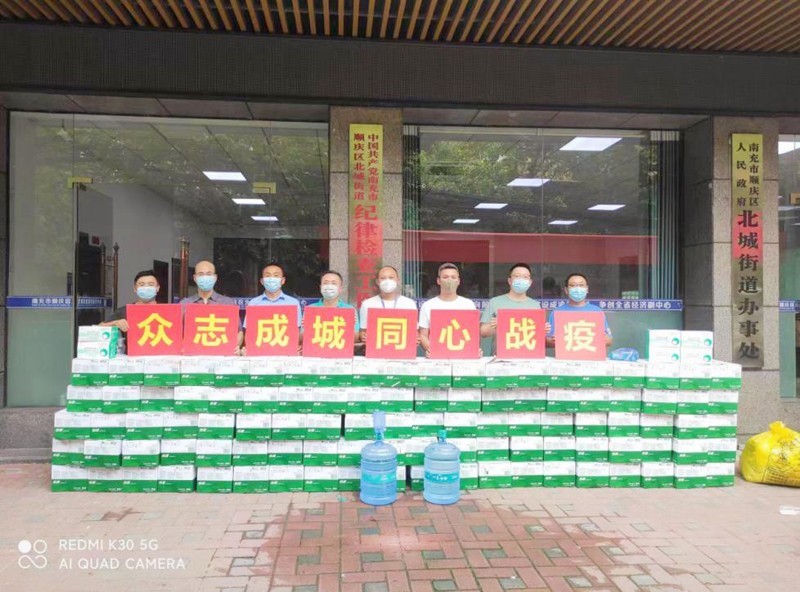 副会长、红枫餐饮负责人贺艳预计拿出10万元购买食材,自8月21日开始带领团队为新建、萦华、西山三个街道办各核酸检测点工作日均赠送工作餐300份,24日组织30多名员工参加清晨核酸志愿者服务工作,随后为顺庆区城管局赠送30件矿泉水、30盒藿香正气水,并每日免费提供60份晚餐。