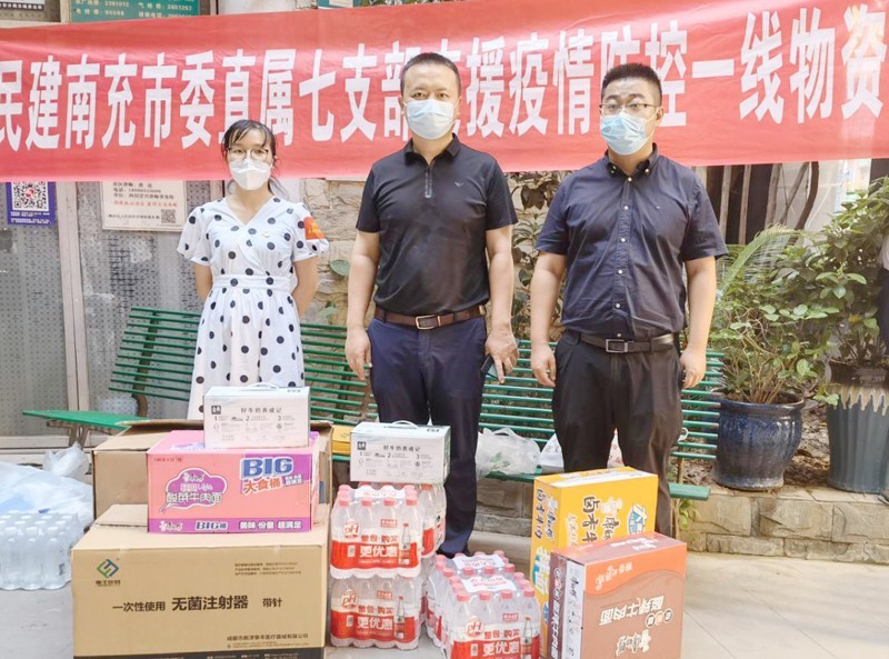 酷暑中突发的疫情使得医用物资、防暑降温物资较为缺乏。“一方有难八方援”,广大民建会员纷纷发扬奉献精神,主动筹集物资,积极支援抗疫一线。从8月21日至8月24日,市直三支部、七支部、九支部、十二支部、民建顺庆区企业支部等纷纷走进街道办走进社区,将防护服、隔离衣、医用隔离面罩、医用手套、医用外科口罩、藿香正气液等医疗物资以及大量矿泉水、牛奶、方便面、水果等生活物资送到20多个工作点的工作人员与医护人员的手中,其中矿泉水约1000件,医用口罩近20000个。