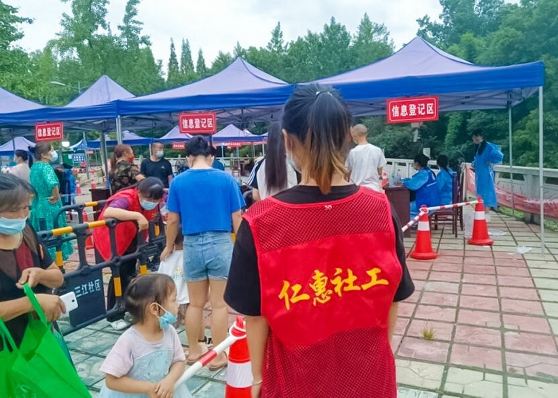 为了尽快阻断疫情的传播,8月29日下午,四川省崇州市三江街道开展全民核酸检测,三江街道社工接到通知后,积极响应号召,直接参与到核酸检测志愿服务的队伍中来,全力协助社区工作人员维持核酸检测的秩序,助力医护人员,筑牢疫情防控安全线。