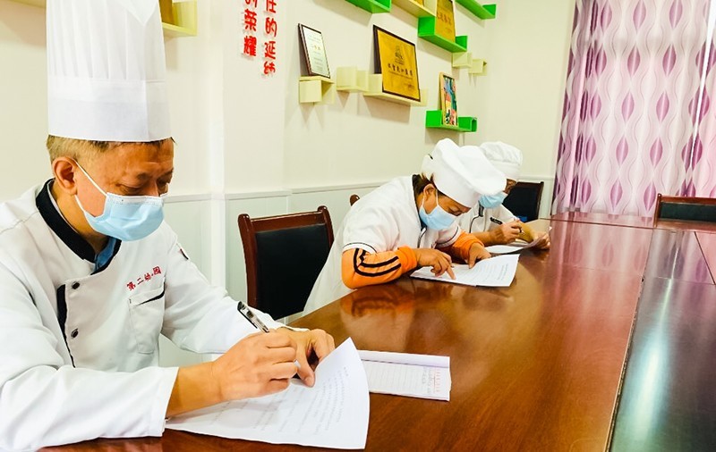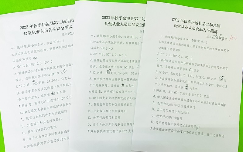 最后,食堂工作人员进行了《2022年秋季开学食堂从业人员知识测试》,通过测试进一步巩固大家的专业知识。