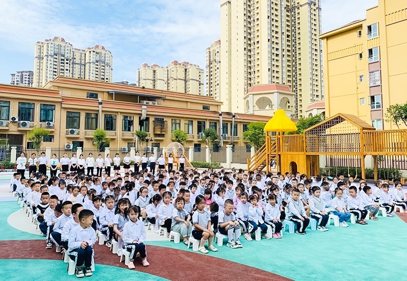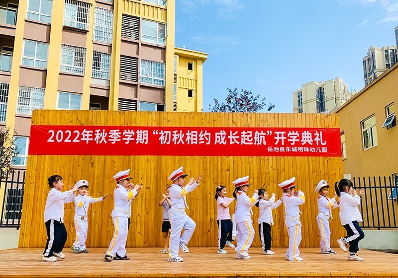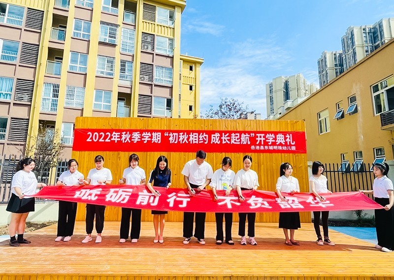 近日,四川省广安市岳池县东城明珠幼儿园全体教职工早早地在幼儿园等待宝贝们的到来,一起祝福、迎接新学期!(杨凤)