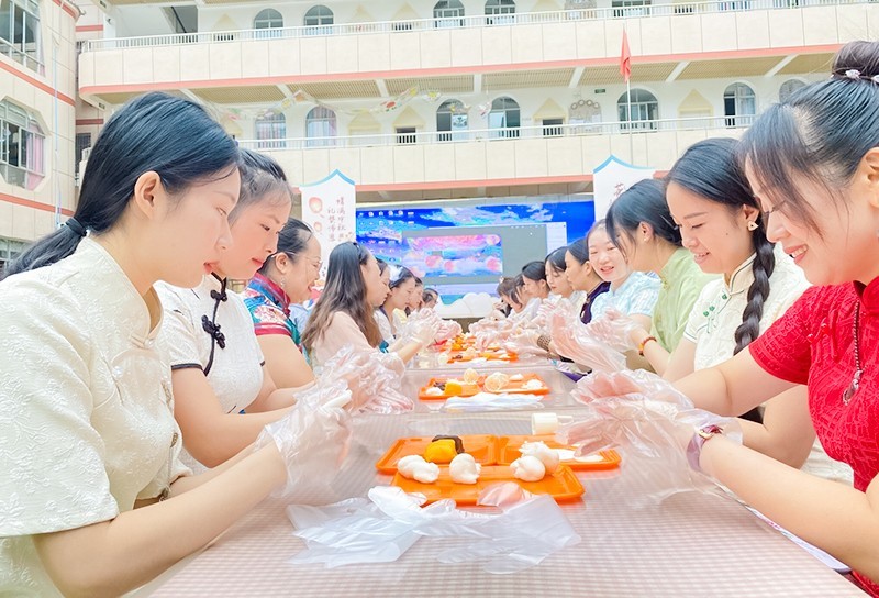 接下来,师幼集体表演手势舞《水调歌头 明月几时有》,共同感受中秋节的节日氛围。最后,大家一起动手,在月饼DIY活动中共庆佳节,同享欢乐。