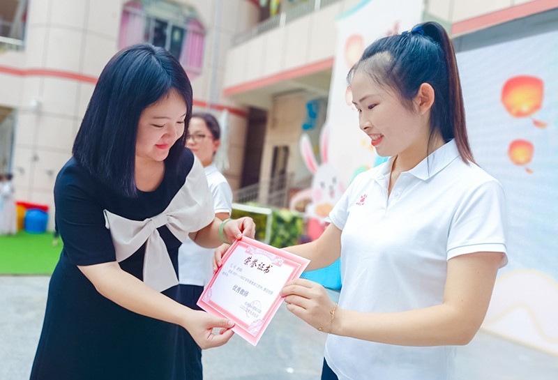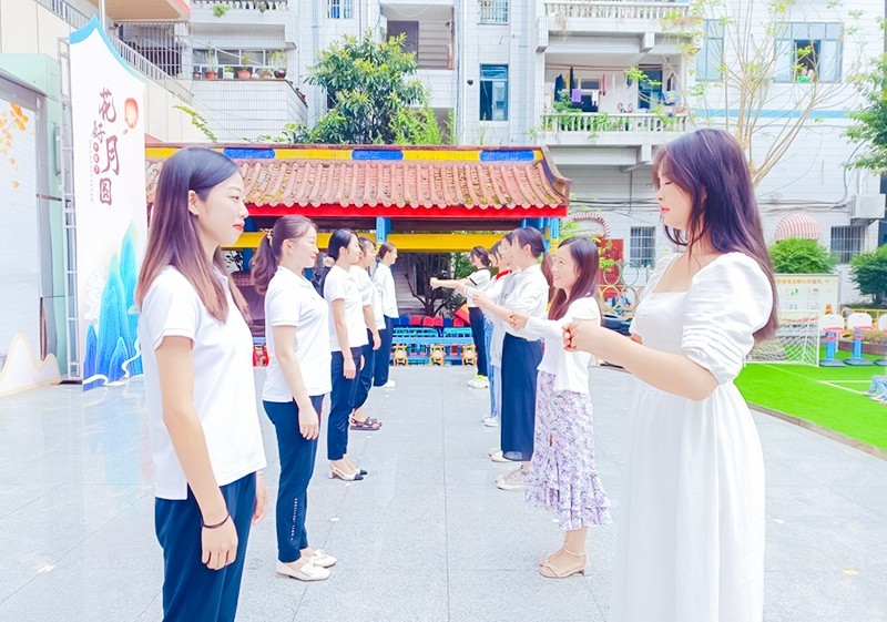 接着,该园领导班子对表现优异的教师进行了表彰,为老师们颁发了优秀教师证书。随后,主持人宣布师徒结对仪式开始,由新教师组成的“徒弟”给教学经验丰富的教师行拜师礼。老师们的汉服旗袍礼仪秀点燃了现场的激情,老师们尽显风姿,展示出富有活力的青春气息。