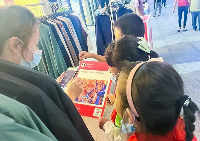 小队员们积极劝募:我们今天的募捐活动,是为了帮助自贡市的留守儿童、无人抚养儿童等困境儿童筹集温暖包,你们的一份小小的善举或许只是举手之劳,但却可以给他们带来温暖和希望!现场群众无不为之感动,纷纷献出一份爱心,还有散步的阿姨加入劝募的队伍中:我们也没有好大的能力,但是小朋友都那么有爱心那么积极,我们也可以做点力所能及的事!