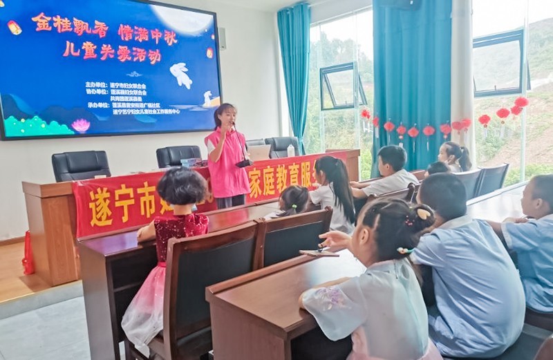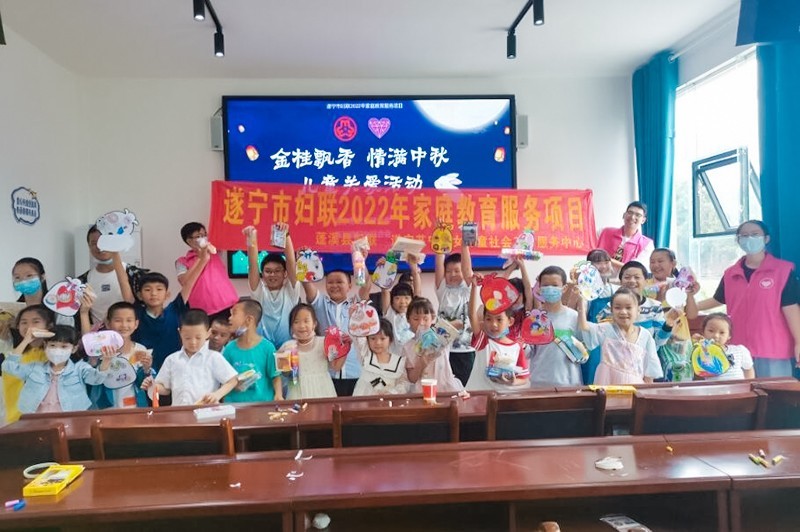 秋风送爽,中秋月更圆。踏着歌的旋律,伴着花的清香,我们又共同迎来了一年一度的中秋节。9月10日,为弘扬、传承中华传统文化,让孩子们更好地了解中秋节的来历和传统习俗,感受中秋节团圆的热闹气氛,由四川省遂宁市妇女联合会主办,蓬溪县妇女联合会、共青团蓬溪县委、蓬溪县普安街道广福社区协办,遂宁艺宁妇女儿童社会工作服务中心承办的“金桂飘香 情满中秋”儿童关爱活动在蓬溪县家庭教育指导服务中心举行。