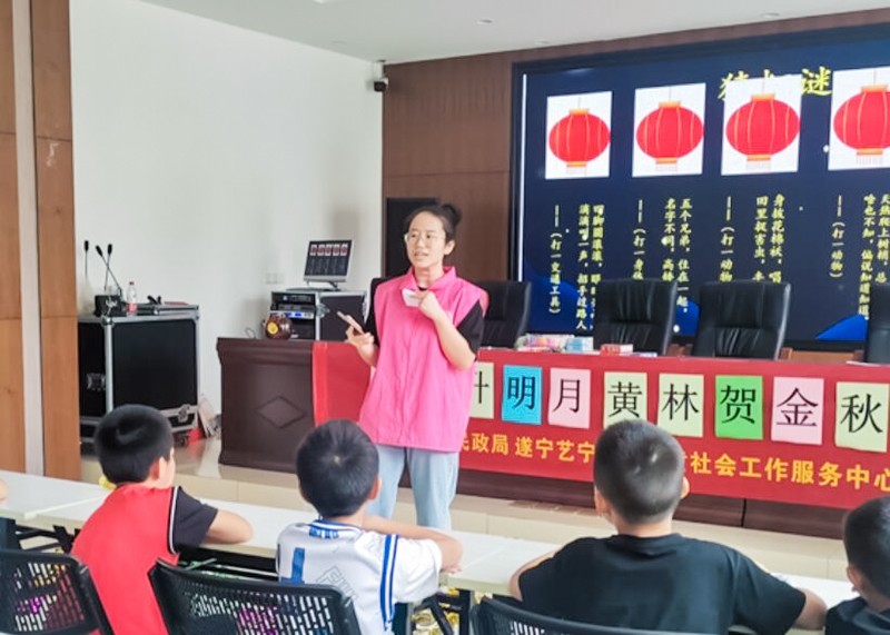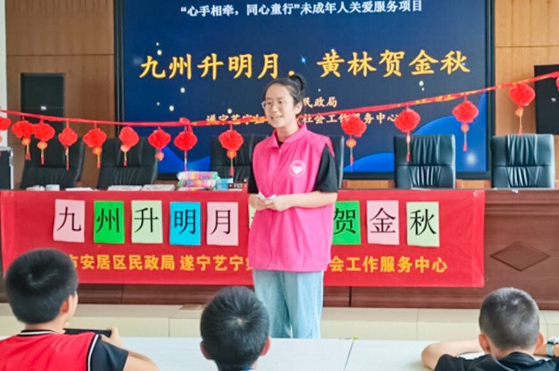 中秋月圆夜,为了让四川省遂宁市安居区黄林社区的小朋友们能在中秋佳节中感受中华传统文化的奇妙之处,安居区民政局联合遂宁艺宁妇女儿童社会工作服务中心在黄林社区开展了“九州升明月,黄林贺金秋”庆中秋活动。