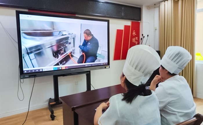 此次培训主要围绕《食堂从业人员工作职责及管理制度》《食堂从业人员应具备的卫生操作要求》《食品加工制作环节的规范操作》等内容展开,重点强调食堂从业人员的安全意识、服务意识、卫生意识和法律意识,并进行食堂从业人员知识测试,进一步巩固培训内容。
