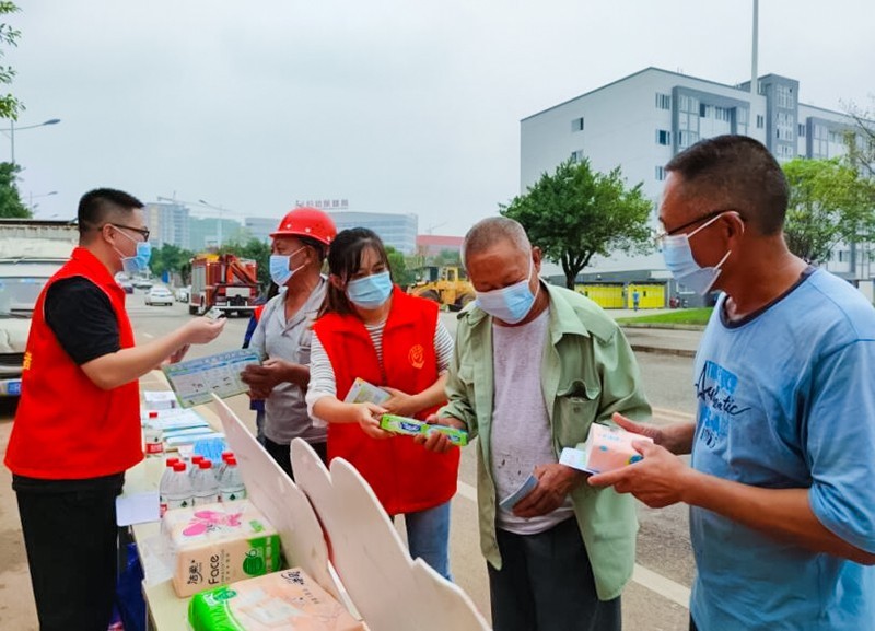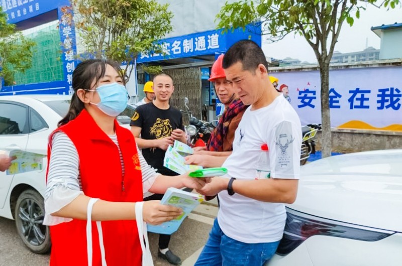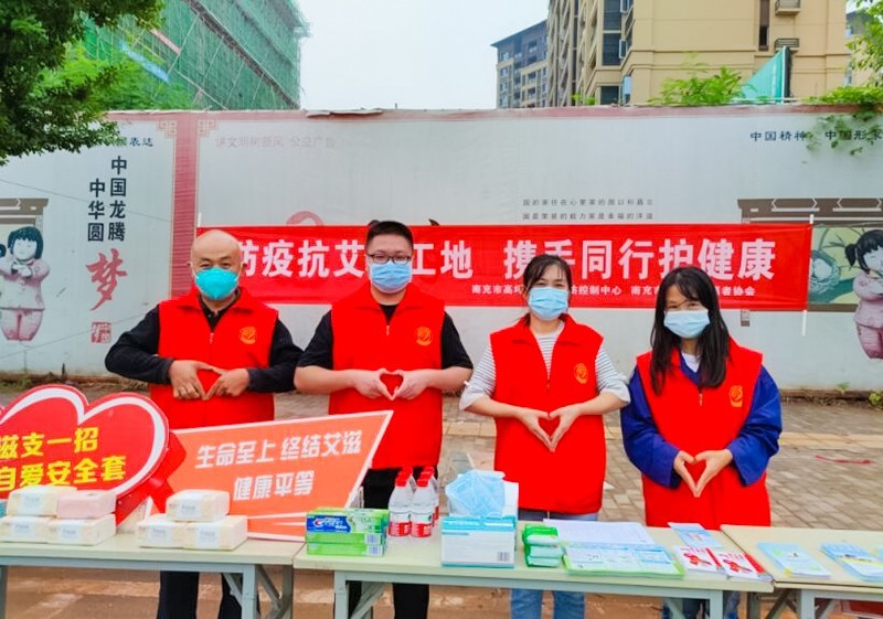 为进一步推进艾滋病防治工作,加强防艾知识宣传,提高流动人口抗击艾滋的自我防护和健康意识。9月16日,在防疫取得有效成果的前提下,由四川省南充市高坪区疾病预防控制中心指导,南充市高坪区志愿者协会组织开展了“防疫抗艾进工地 携手同行护健康”主题宣传活动。