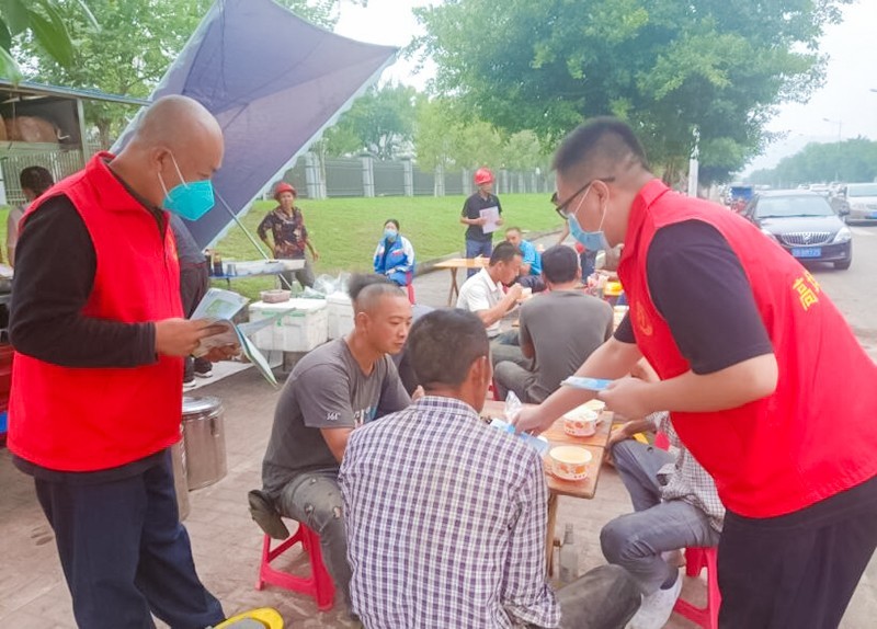 此外,志愿者们利用工人午饭、休息时间,前往工地临时就餐点,向他们发放新冠肺炎防控指南、预防艾滋病宣传折页,倡导大家学习健康知识,提高安全意识,知晓艾滋传播途径,了解防治艾滋相关政策,有效预防艾滋病。