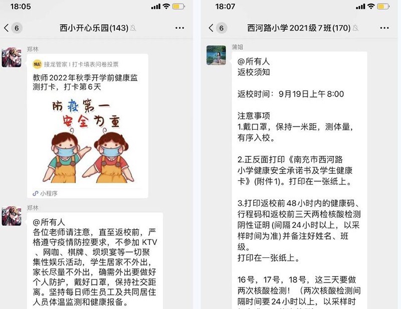 做好人员排查。学校以班级为单位,全面摸排教职员工、学生及共同居住人假期去向,全覆盖、无遗漏、精准掌握每位教职员工、学生及共同居住人返校前7天的健康状况,并建立相应的健康信息台账。通知学生准备好返校前48小时内健康码、行程码及三天两检核酸检测阴性报告。