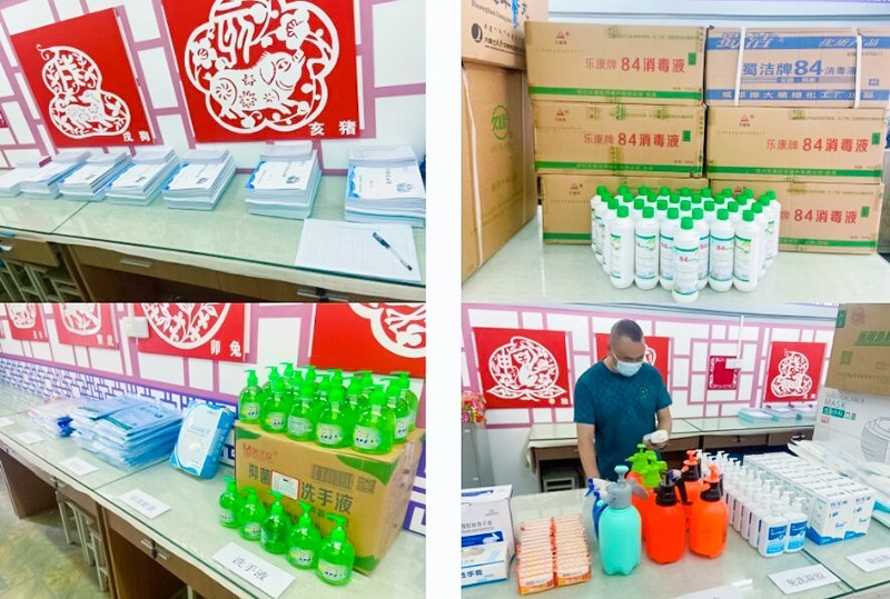 备好防疫物资。学校采取多渠道、多途径、多方式准备充足的测温仪、口罩、洗手液、消毒液、消毒器材等基本防疫物资。建立物资台账,同时向各班分发必备防疫物资和各种安全资料。