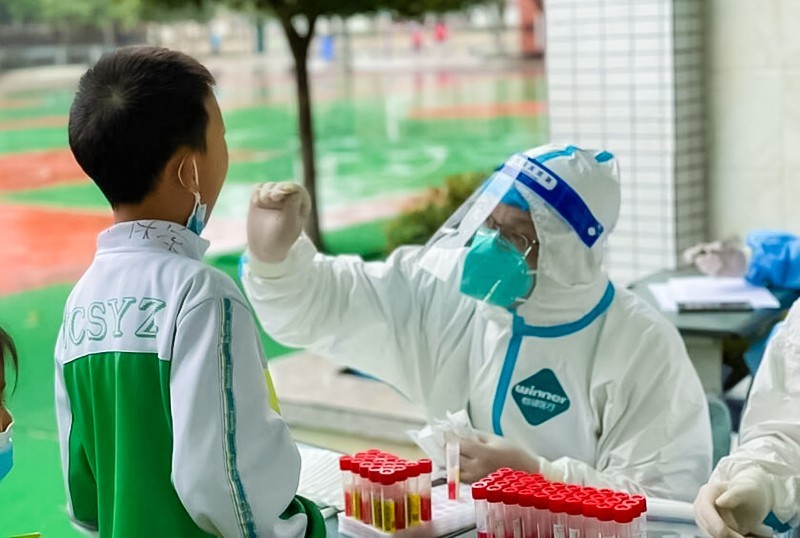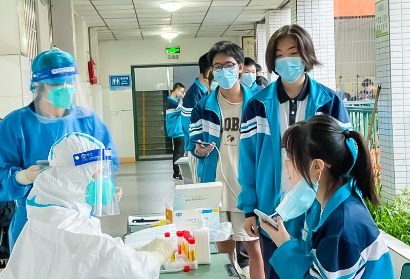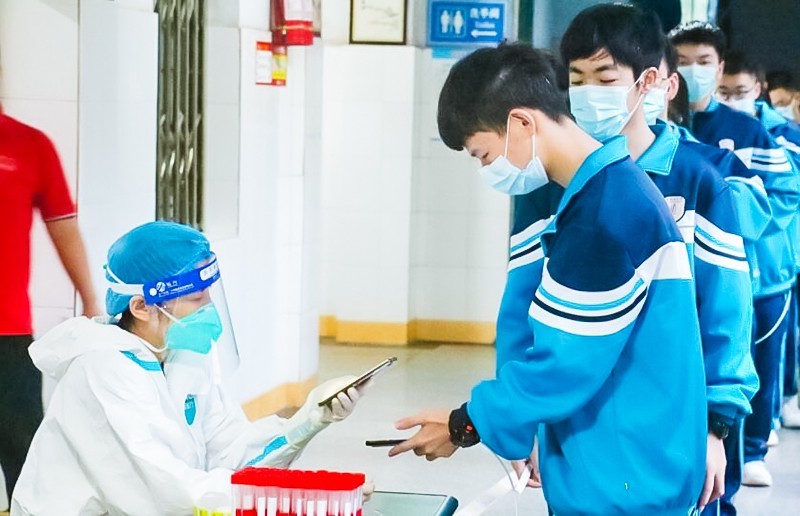 在全体教职工和医护人员的共同努力下,学校近8000名师生员工历时三个半小时,全部完成核酸检测,圆满完成检测任务。(郑小龙)