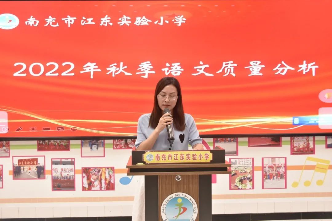 育苗有志,润物无声。为增强教师的质量意识,促进教师之间的交流与合作,不断提升教育教学质量,9月22日下午,南充市江东实验小学开展了2022年秋季语文学科质量分析研讨活动。活动由朱娜老师主持。