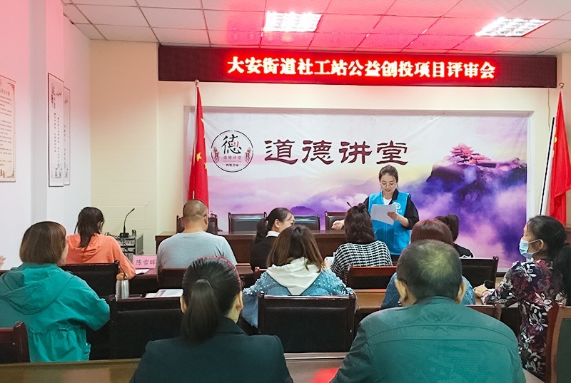 为积极推动四川省自贡市大安区大安街道2022年社会工作服务试点示范项目,进一步贯彻落实,充分发动社会组织、社区社会组织积极参与到社区治理的服务中“加强和创新社会治理”工作,形成人人参与、人人享有的社区治理氛围和社区发展共同体意识去。9月23日上午,在大安街道会议室开展公益创投项目评审会,共有评审组老师、社会组织、社区社会组织等人员近20余人参加。