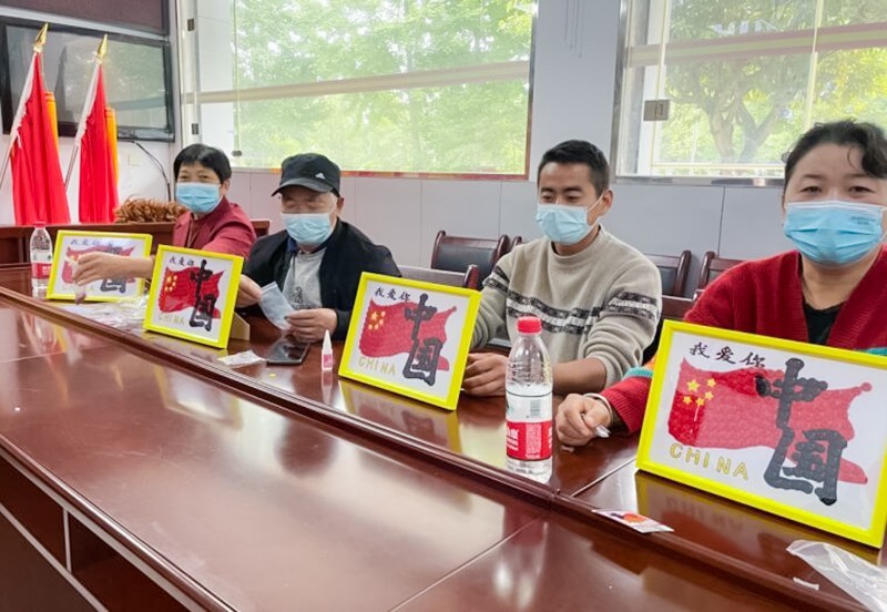活动伊始,社工志愿者详细向在场的社区村民介绍了此次活动主题,细致讲解了纽扣画的制作步骤,让参与者很快掌握了制作方法。随后,在社工志愿者的指导下,大家一边相互分享自己在生活中遇到的各种感人事迹,一边选择自己中意的纽扣,然后用胶水轻轻粘连起来进行创作......不一会儿,颗颗纽扣就变成了一幅幅色彩斑斓、充满爱国、爱党之情的纽扣画。“爱我中华”“我爱你中国”等字样的纽扣画处处洋溢着村民们对党的热爱之情。