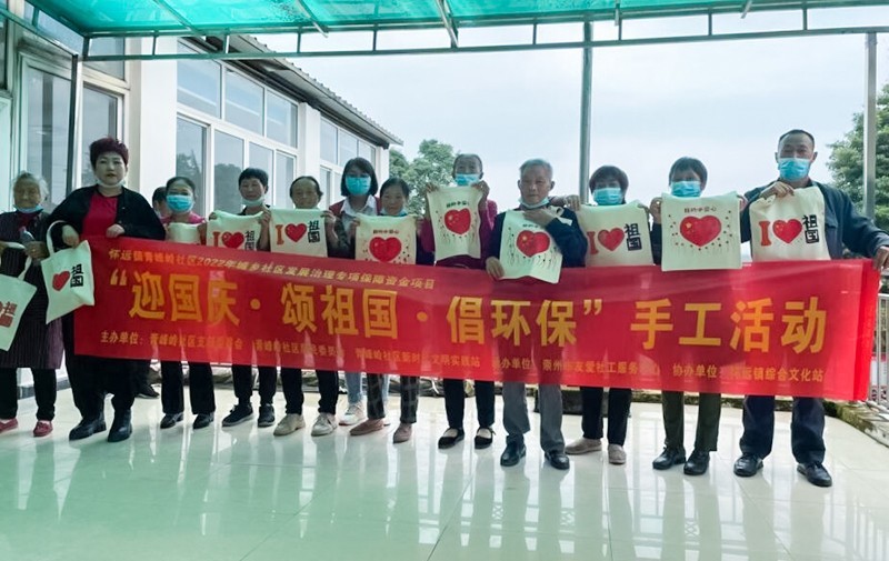 为进一步弘扬中华民族的传统文化,营造浓厚的国庆氛围,并增强社区居民的环保意识,同时鼓励社区居民参与保护和改善环境的活动中。9月29日,由四川省崇州市怀远镇青峰岭社区居民委员会主办、崇州市友爱社工服务中心承办的怀远镇青峰岭社区2022年城乡社区发展治理专项保障资金项目——“迎国庆·颂祖国·倡环保”手工活动在青峰岭社区居民委员会顺利开展,此次活动共有30余人参加。