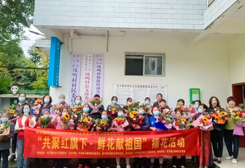为丰富广大居民的精神文化生活,促进其陶冶性情、提高艺术修养,拉近邻里的距离,构建和谐邻里。以国庆节为切入点,通过开展插花活动,让居民充分感受到插花艺术的乐趣,培育社区居民和社区的凝聚力。9月29日上午,由四川省崇州市街子镇凤鸣村村民委员会主办、崇州市友爱社工服务中心承办的街子镇凤鸣村2022年城乡社区发展治理专项保障资金项目--“共聚红旗下 鲜花献祖国”国庆节插花活动在凤鸣村村民委员会顺利开展。