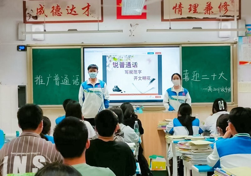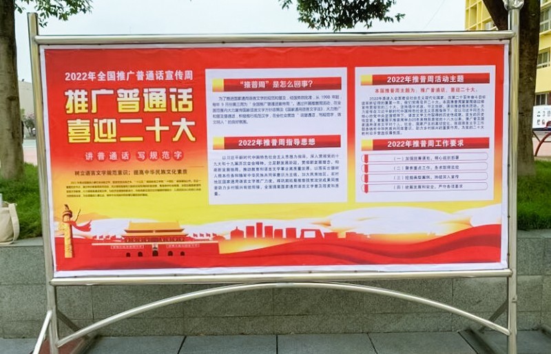 为使广大师生进一步增强语言文字规范意识,用实际行动迎接党的二十大胜利召开,四川省南充龙门中学以“开展第25届普通话宣传周活动”为契机,策划开展以“推广普通话,喜迎二十大”为主题的系列活动。