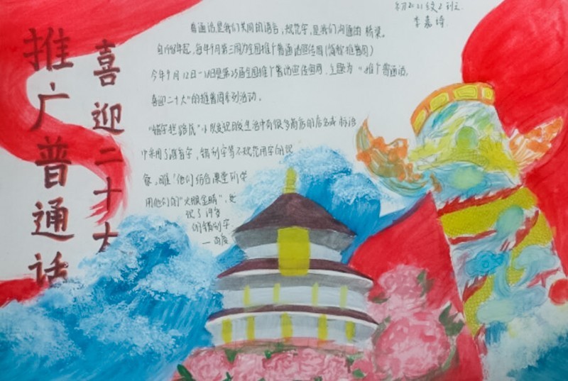 一字一句普通话,千言万语汇中华。南充龙门中学推普周活动的开展,营造了全校范围内“人人讲普通话,人人写规范字”的良好氛围,增强了师生们的爱国主义情感,传承了中华传统文化。学校将以此为契机,奋力成为新时代的推广员,以实际行动迎接党的二十大胜利召开!(陆小林)