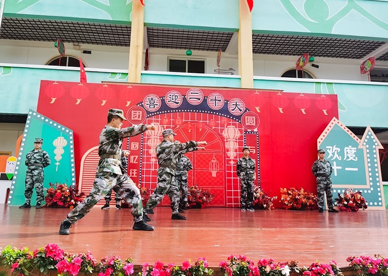 活动开始,随着雄壮激昂的进行曲,各班级方阵一一接受检阅,他们步伐雄健、身姿挺拔。他们正用行动告诉所有人:我们是最棒的中国人。听,熟悉的国歌声响起,孩子们在特警叔叔的带领下进行了庄严的升旗仪式,冉冉升起的五星红旗,点燃了师幼的爱国热情。我们特邀请退伍老兵家长参加本次活动,整齐划一的军体拳和嘹亮的口号无不展示着老兵们退伍不退色的军人本质,他们的良好精神面貌也感染着每一个孩子!