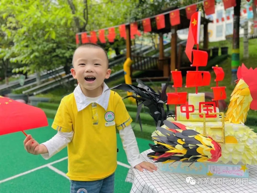 为喜迎国庆节,加强爱国主义教育,培养师生良好的爱国情操,进一步培育和践行社会主义核心价值观,在国庆节来临之际,南充市高坪区青苹果幼稚园积极布置环境,精心营造国庆氛围,小班组的小朋友们为祖国妈妈庆生,带来了亲子作品航天模具以及《海陆空》,快来欣赏一下吧~