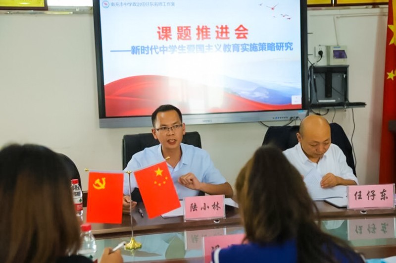下午1点20分,工作室全体成员齐聚一堂召开工作室课题推进会。会上,工作室成员、龙门中学教科室副主任陆小林对当前课题工作完成情况进行了通报,并围绕课题阶段研究目标任务就研究成果具化、结题准备等方面作交流发言。