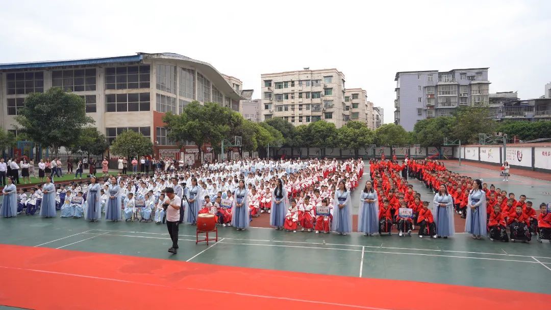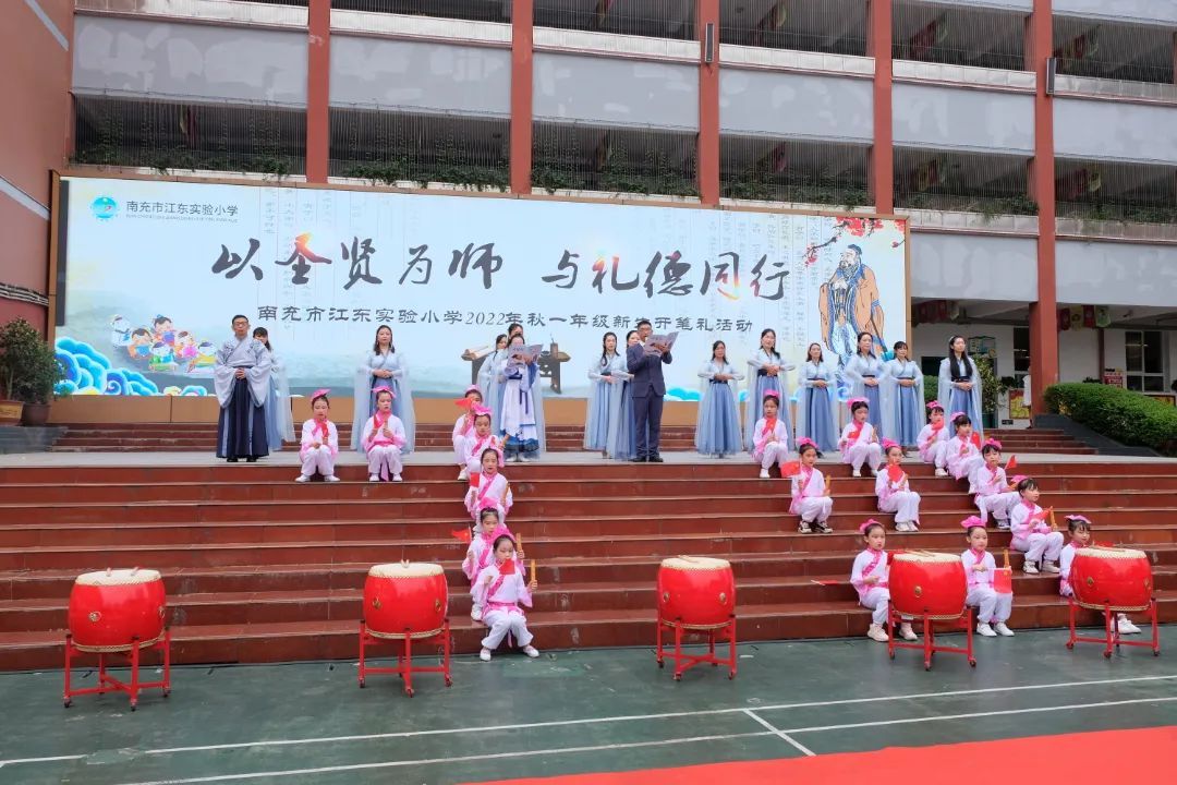 为传承和弘扬中华优秀文化,欢度国庆佳节,向新中国成立73周年献礼,9月30日上午,南充市江东实验小学仙鹤街校区一年级师生和家长代表遵守疫情防控规定,经学校按照防疫要求“四必查”,参加了“以圣贤为师,与礼德同行”新生开笔礼活动。