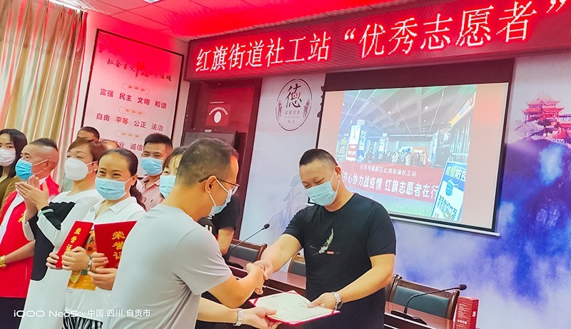 9月30日,由四川省民政厅支持、自贡市民政局、自贡高新区社军局指导、自贡高新区红旗街道办事处主办、自贡市灵志社会工作服务中心承办的红旗街道社工站项目——9月“优秀志愿者”表彰大会在红旗街道办事处会议室举行,通过志愿服务时长、服务态度等综合评价选出15位志愿者获得本月表彰。