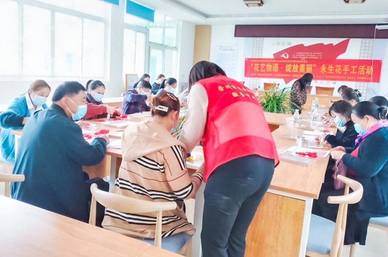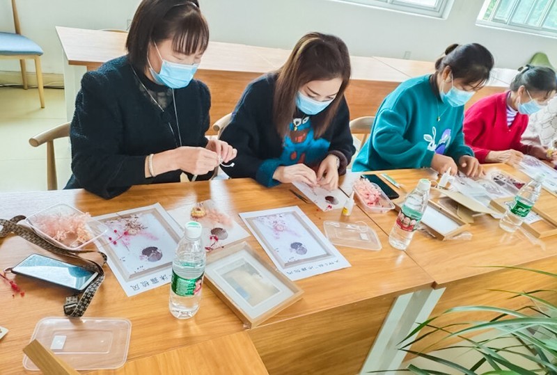 通过自己动手制作,将自己一点一滴的劳动转化为一朵朵美丽的永生花不仅装饰点缀自己的生活环境,也营造崇尚劳动、团结和谐、聚力发展的浓厚氛围,同时也增强了居民之间的互动,促进了社区的和谐发展。