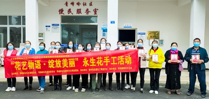 花总是有一种让人觉得生活顿时就充满了情调的美丽,以花为媒,传递美好的生活态度。为凝聚社区居民之力,展现社区积极向上的精神风貌。10月12日上午,由四川省崇州市怀远镇青峰岭社区居民委员会主办、崇州市友爱社工服务中心承办的怀远镇青峰岭社区2022年城乡社区发展治理专项保障资金项目——“花艺物语·绽放美丽”永生花手工活动在青峰岭社区居民委员会顺利开展。