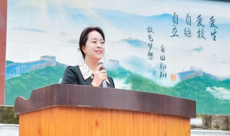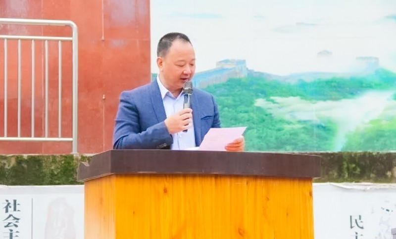 蒲明刚致欢迎辞,介绍了双桂小学的历史以及取得的成绩,并表示将深入挖掘双桂当地文化内涵,形成独特的“百折不挠忠贞报国”的校园文化,形成自己鲜明的教育特色,全力为南充市的发展办好教育、培养人才。