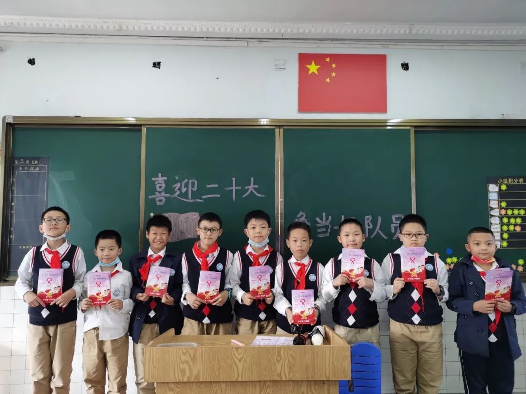 10月13日清晨,队旗飘飘,领巾飞扬。二年级第二批入队的新队员欢聚一堂,伴随着庄严的出旗曲,全体新队员满怀激情地齐唱《中国少年先锋队队歌》,专注的眼神、嘹亮的声音,充分展现了少先队员们积极向上的风采和奋发昂扬的精神面貌。