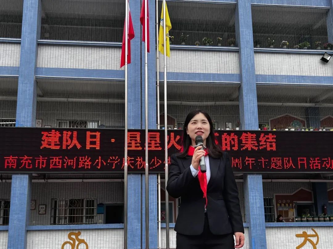 学校少工委副主任李丹表达了对新队员们的祝福,并对他们寄予厚望,希望他们肩负起振兴中华的伟大使命,胸怀祖国、心怀志向,争做有理想、有道德、有文化、有纪律的一代新人,为红领巾添彩,为少先队添彩!