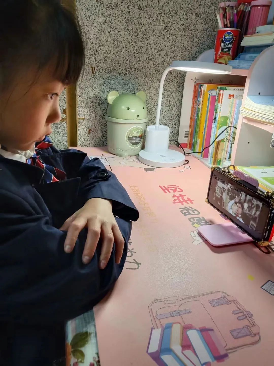 10月12日晚,队员们线下与家长一起观看全国少工委推出的《致敬红领巾》云课堂,知道了少先队的发展历史,了解了从安源儿童团到劳动童子团、从共产主义儿童团到抗日儿童团再到中国少年先锋队的光辉历程。这次学习让队员们的内心世界得到了一次洗礼和升华,也感受到了作为一名少先队员的责任与担当、光荣与自豪。