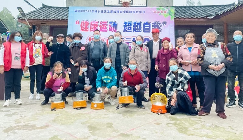 为了更好的让社区村民展开锻炼,推动村民健身,更好的展现富强村村民热爱生活、积极向上的精神。10月12日,由四川省崇州市怀远镇富强村村民委员会主办、崇州市友爱社工服务中心承办的“健康运动·超越自我”趣味运动会活动在富强村顺利开展。