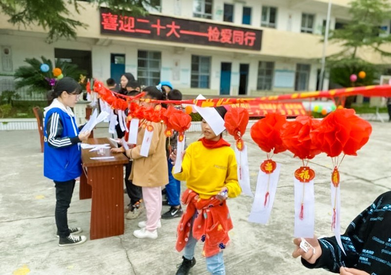 活动中,检察官与普法志愿者结合各点位环节设计,引导同学们学法、守法、用法。同学们热情高涨,踊跃参与着游园游戏,穿梭在每一个法治宣传摊位,积极学习着相关法律法规。在“青春向未来”环节,孩子们在便利贴上写下了对党和国家的祝福,稚气的笔触下流淌出对祖国的热爱。