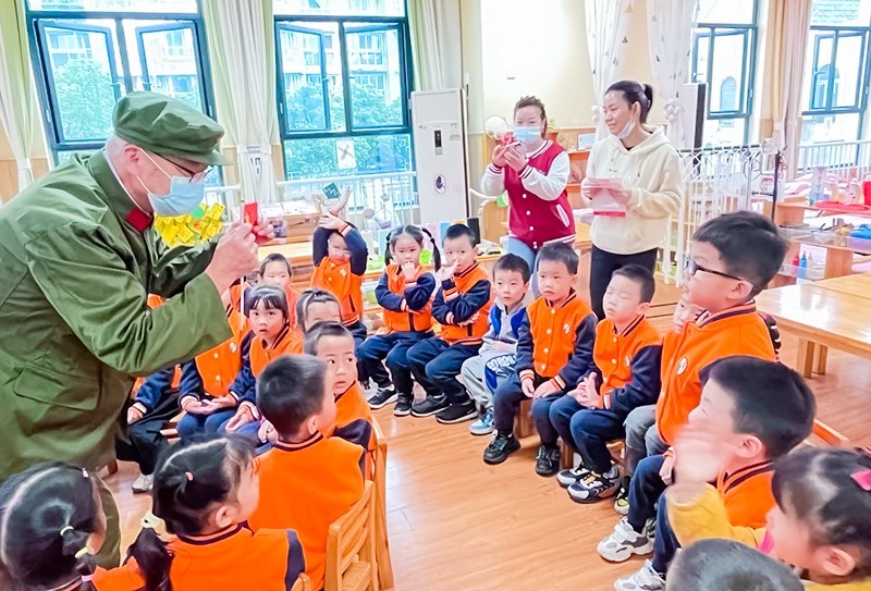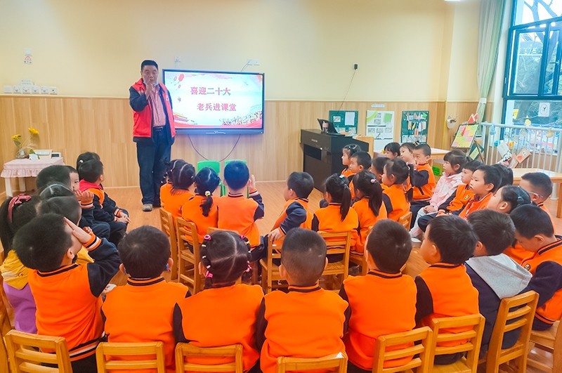 少年儿童是祖国的未来,民族的希望。为贯彻落实“双减”工作的要求,提升教育实效时代,培养青少年树立强烈的使命感,激发爱国爱党情怀。10月27日,四川省成都市郫都区郫筒街道一里桥社区党委、居委、退役军人服务站联合筑桥尖兵连志愿服务队、长青路幼儿园、明诚社工在共同开展了爱国主题教育“老兵入园区·传承红色基因”活动。