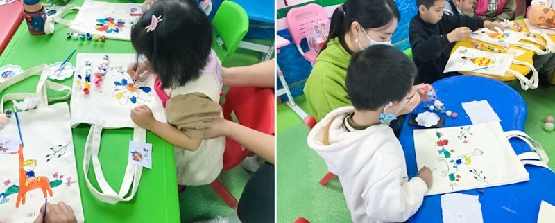 活动开始前,由友爱社工向大家讲解的相关环保知识,然后志愿者给每一位小朋友分发环保袋、颜料、画笔等制作材料。拿到材料后孩子们就迫不及待地动手绘制起来,一个个聚精会神地给手中的环保袋上色,画出了各式各样的图案,整个活动现场欢声笑语一片。