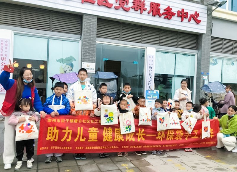 为了宣传环保理念,提升文明素养,从而养成保护环境的良好习惯。通过开展环保袋的手工制作活动来增长儿童的兴趣爱好。让儿童对生活环境有更多的认识,了解更多的环境保护给生活带来的好处。10月28日,由四川省崇州市民政局、街子镇政府、街子镇唐公社区居民委员会主办,崇州市友爱社工服务中心承办“助力儿童 健康成长”——环保袋手工制作活动在唐公社区顺利开展。