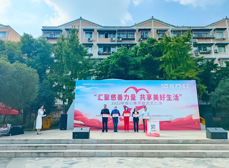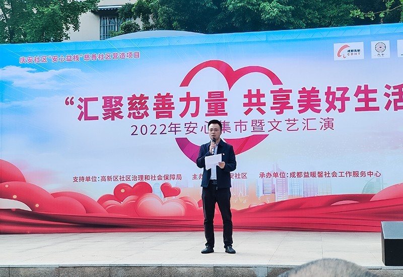 授人玫瑰,手留余香,奉献爱心,收获希望。10月31日下午,成都高新区2022民生微项目“安心益栈”慈善社区营造项目之“安心集市”活动正式开展。应邀参加慈善活动的嘉宾有中国移动高新分公司总经理、党支部书记姚斌,副总经理王亮;国家电网四川电力(成都高新)连心桥共产党员服务队南区供电所支队刘思龙;四川联发天然气有限责任公司办公室副主任周茜;交警六分局三大队党支部书记大队长李景昊;四川万帆停车管理有限公司总经理刘勇;庆安社区商家联合会会长甘蓉康、副会长白玉平及庆安社区爱心商家。