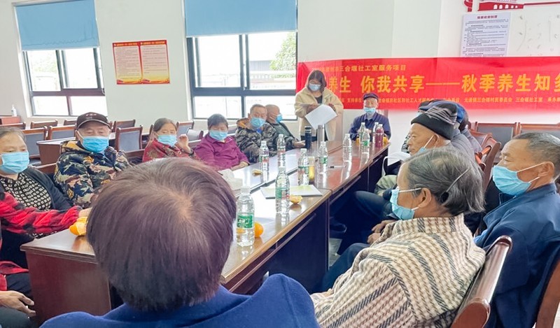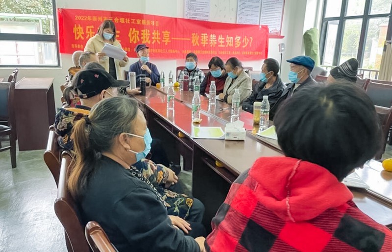 为普及秋季养生方法,提升小组成员的养生意识,11月1日下午,由四川省成都市民政局、崇州市民政局、崇州市慈善总会、元通镇政府、元通镇三合堰村村民委员会主办,崇州市友爱社工服务中心承办的“快乐养生,你我共享——秋季养生知多少?—小组活动第二节在三合堰社工室顺利开展。