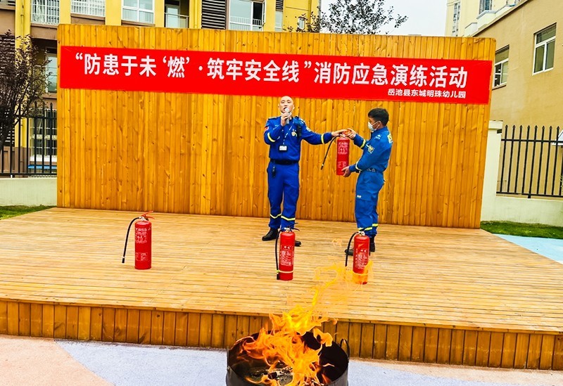 居安思危,思则有备,有备无患,才能防患于未然。以“11.9”全国消防日为契机,四川省广安市岳池县东城明珠幼儿园为进一步增强师幼安全意识,提高自救防范能力,做到在发生火警火灾时,能临危不乱,有序、迅速地按照消防逃生路线安全疏散,确保生命安全。让教职工掌握正确使用灭火器的方法及保护幼儿逃生的方法,提高抗击突发事件的应变能力。11月3日上午,该园邀请蓝天救援队队员到园内开展了消防演练。