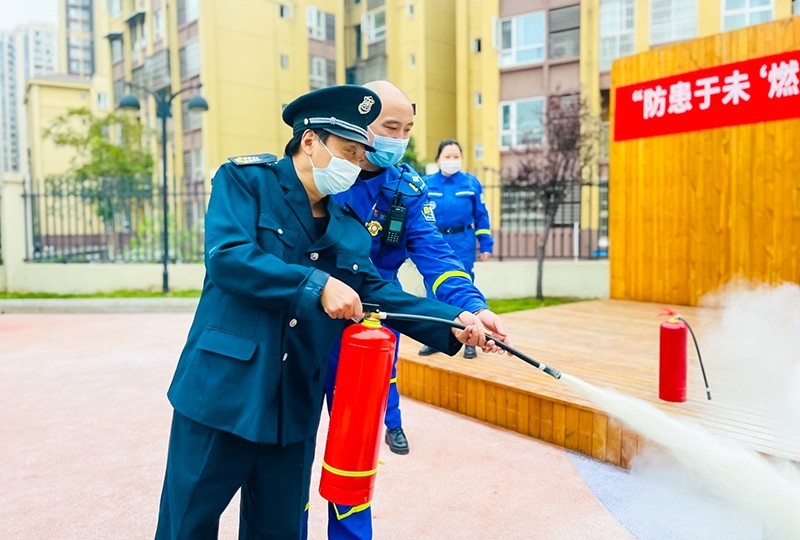 为进一步提升全员消防安全基本素质,筑牢防灾减灾救灾的安全防线,疏散演练结束后,该园全体教职工开展了消防器材实操实训活动。培训中,救援队长详细讲解、示范灭火器和消防栓的正确操作方法。老师们认真聆听、观看,牢记消防“四会”:遇火灾,不慌乱,会报警,懂疏散,小火用灭火器,大火用消防栓。