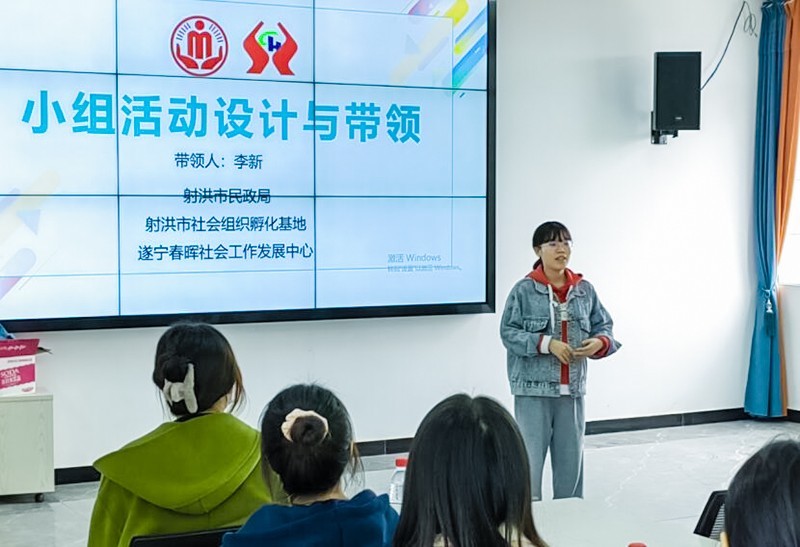 小组社会工作是社会工作的三大方法之一,是以小组的形式开展的助人活动。为加强全市社会工作人才队伍建设,提升社会工作专业化水平,增强社会工作实务能力,11月15日下午,四川省射洪市社会组织孵化基地组织开展了“小组活动设计与带领”培训活动。