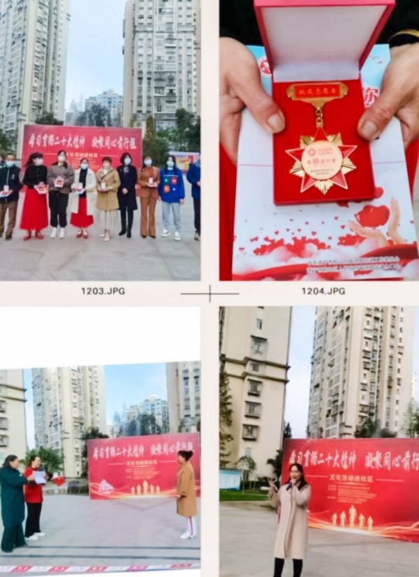 第三环节“志愿颁奖仪式”。为进一步弘扬志愿服务精神,凝聚爱心力量,表彰先进,树立典型,激励更多的党员、居民参与到志愿队伍中来,楠木社区党委书记钟萍为在“9.20”疫情防控中做出突出贡献的志愿者颁发了证书和奖章。