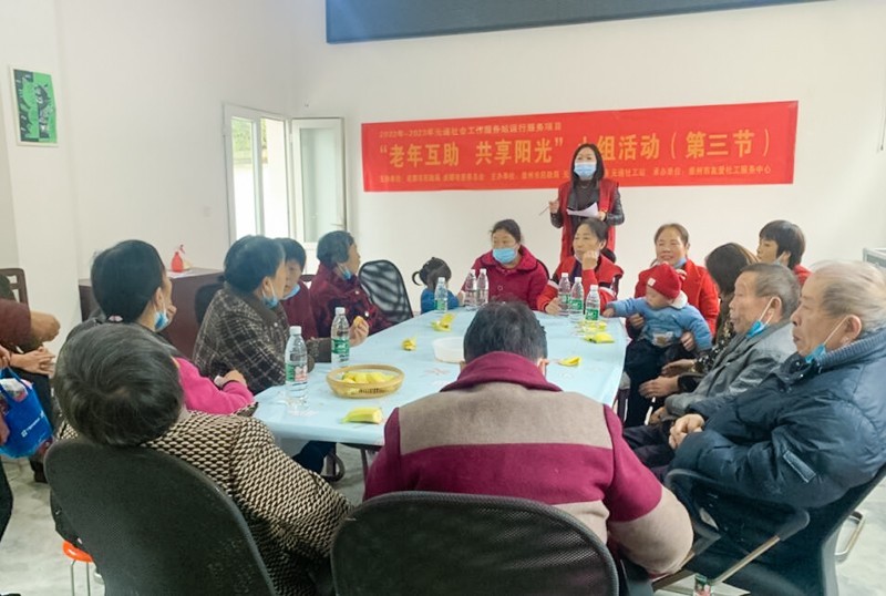 11月17日,由四川省成都市民政局、崇州市民政局、崇州市慈善总会、元通镇政府主办,崇州市友爱社工服务中心承办的“老年互助 共享阳光”小组活动(第三节)在元通社工站小组功能室顺利开展。