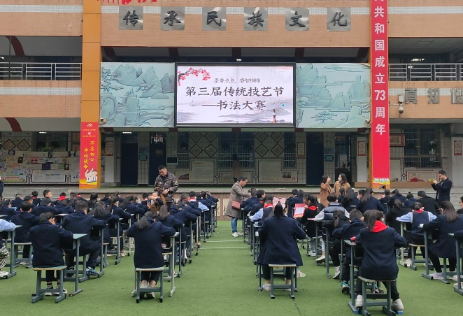 各班在初赛的基础上推选2名优秀选手参加校级比赛。比赛现场,同学们沉心静气,自信从容,聚精会神地书写,一个个工整、优美的汉字,让人阅之欣喜,点横撇捺间,感受中华传统文化的博大精深。