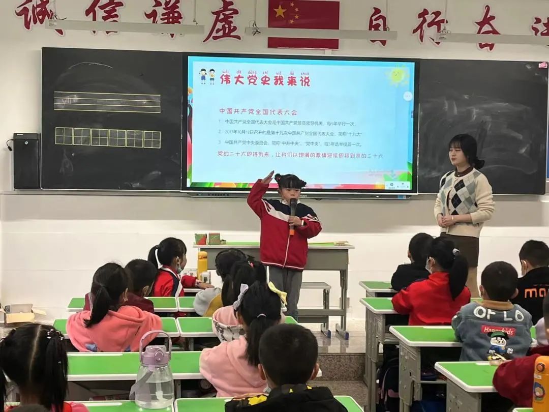 活动中,全体师生围绕党的二十大召开时间、地点、背景、重要意义、会议主题等进行学习。各中队辅导员向队员讲述了中国共产党走过的光辉历程,进一步深化广大学生们对党的百年奋斗历程的认识和感悟。各中队辅导员还结合少先队员的生活实际,紧扣党的二十大报告主题,鼓励广大青少年踔厉奋发、勤勉向上、笃行不怠,争做新时代好少年。