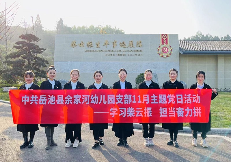 为增强党员党性意识,引导党员教师充分发挥“拼”的精神、“闯”的劲头、“创”的勇气。11月25日,四川省广安市岳池余家河幼儿园党支部组织全体党员同志来到岳池县柴云振生平事迹展陈中心,开展“学习柴云振,担当奋力拼”主题党日活动。